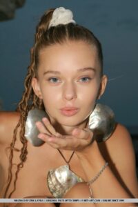 Îmbrăcat într -un top alb și care se potrivesc cu jambiere albe, sandale aurii, cercei mari și colier cu pandantiv, cu părul legat într -o coadă de ponei înaltă, Milena este o zeiță mică fermecătoare, cocoțată printre stâncile stâncoase abrupte.