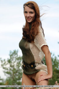 Locație exotică în aer liber, plină de o vedere la fel de spectaculoasă a unei zeițe, de scăldat și de relaxare neinhibitată printre iarba verde luxuriantă, râul rece și copacii gnarly.